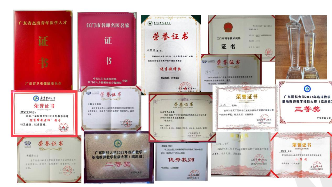 2021年《珠中江儿科住培医师临床思维及医学人文大赛》,荣获个人优秀奖,团体三等奖;参加2022年江门市第一届儿科住院医师病例演讲比赛荣获一等奖,2023年发表论文“新生儿胃液与咽拭子标本11种病原体核酸检测结果一致性研究”。