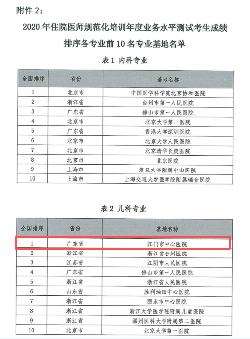 2020年国家住培年度水平测试,儿科基地全国第一。