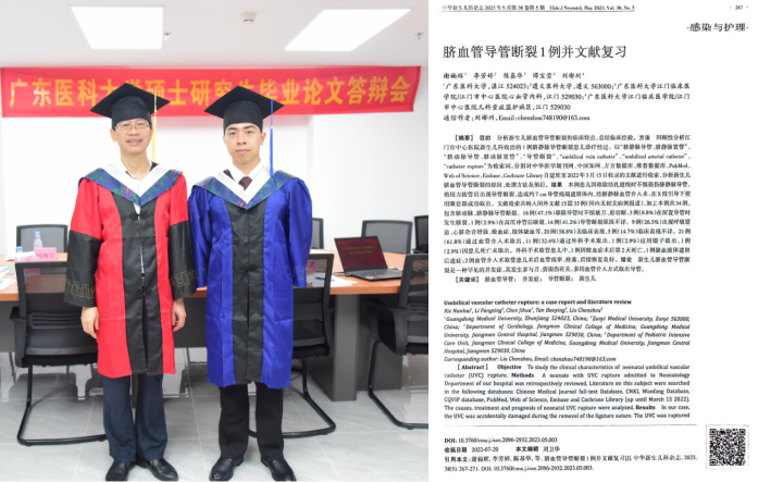 2023年在中华新生儿科杂志发表论文“脐血管导管断裂1例并文献复习”。