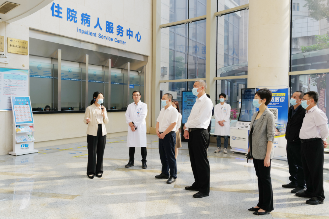高放一行先后深入医院住院服务中心、门诊部、核医学科等关键点位实地察看,通过现场走访、询问交流等方式,详细了解门诊医保结算、住院医保规范化管理、医保与商业保险协同服务、药物双通道全流程管理、智慧医疗便民服务、精准医学诊疗等重点工作开展情况,细致询问工作推进中的实际成效与难点问题。