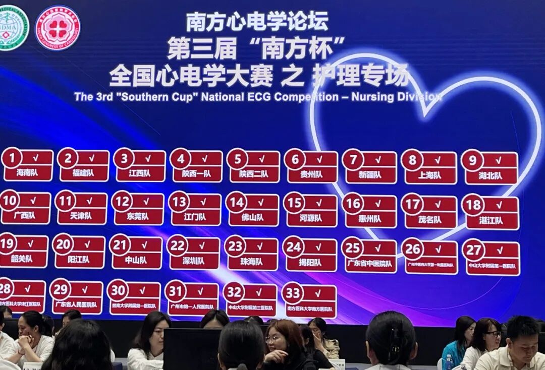 2026年3月20日—22日,第27届南方心血管病学术会议在广州白云国际会议中心召开,作为本次会议重磅环节的第三届“南方杯”心电学大赛于3月22日开赛,护理组赛场汇聚了海南、福建、江西、新疆等11支省外队伍,广东省内各地市代表队和广州市部分医院代表队,竞争规格高、比拼强度大。