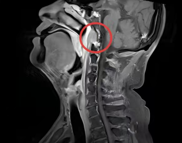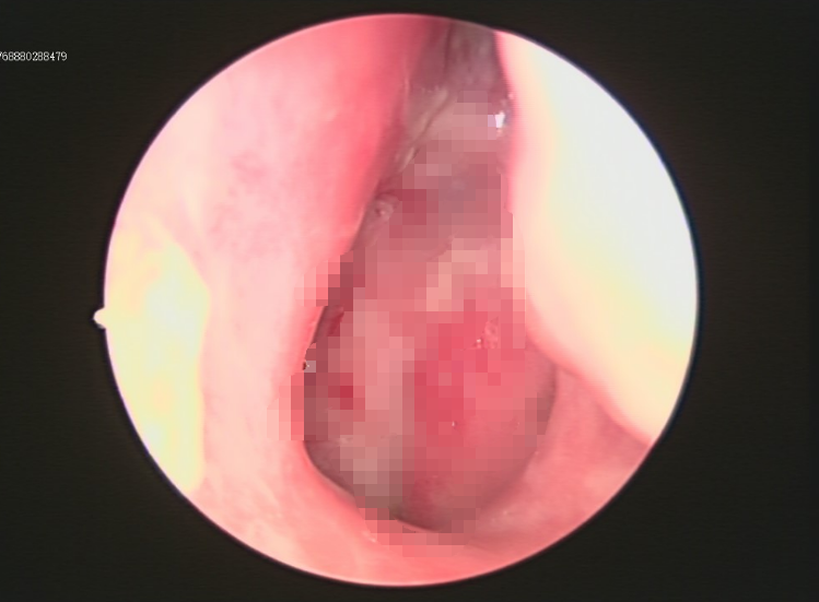 为进一步明确病理性质,门诊行电子鼻咽镜检查并尝试活检,但因病灶位置深在、解剖结构复杂、常规路径难以抵达核心区域,未能取得阳性结果。