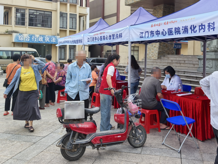 义诊现场,来自江门市中心医院、新会区中医院的呼吸与危重症医学科、心血管内科、消化内科、神经内科、儿内科、骨科、妇科、康复科、中医科等多个学科的专家组成“健康守护团”,为居民提供“一站式”诊疗服务。专家们通过耐心问诊、细致查体,针对常见病、慢性病及疑难病症给出个性化治疗方案,让村民足不出镇即可享受三甲医院级别的医疗服务。