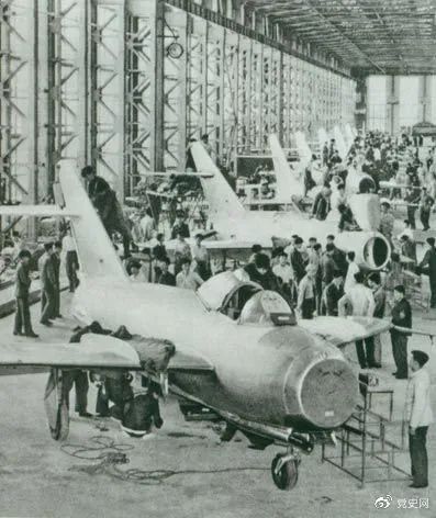 1956年7月19日,国产第一架喷气式战斗机在沈阳首次试飞成功,标志着中国具备了独立研制空军武器装备的能力。图为国产第一批喷气式飞机即将出厂。