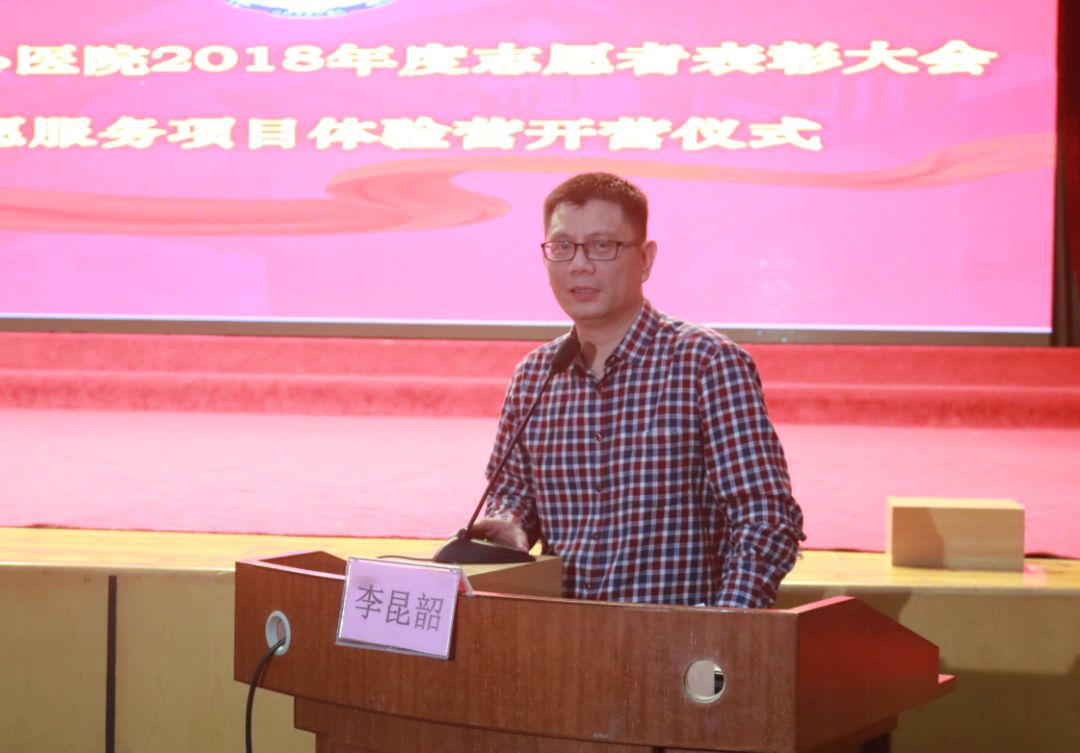 李昆韶秘书长更是在查看江门市中心医院2018年度服务数据(2018年中心医院新增加义工223名,占全部义工人数的24%;活动场次116次,占总场次的37.7%;活动人次1597人次,占所有活动人次的46%;服务队组织开展志愿服务时长达6814小时,占总时长的30%,80%的活动和我们的专业医疗卫生服务有关),到会上来“寻找答案”,认为江门市中心医院对2018年度志愿服务工作总结到位,对“江心医”的志愿服务模式表示认可及肯定,并提出三点建议:一、明确目标,精准服务。期望江门市中心医院的志愿服务能解决更多问题,化解更多矛盾,树立更多典型。二、抓管理,强基础。江门市中心医院的志愿者参与率非常高,期望接下来医院能继续做好义工管理工作,进一步提升义工的活跃度。三、找亮点,创品牌。期望江门市中心医院在志愿服务中注重总结服务经验,继续创新,打造“江心医”品牌效益。