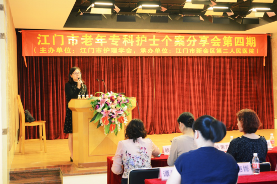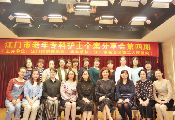 为推动江门市老年专科护理发展, 2018年3月27日下午,由我院牵头举办的“江门市老年专科护士个案分享会(第四期)”在江门市新会区第二人民医院举行。我院护理部区秀丽副主任及老年组组长高娟碧护长等4人参加,江门三区四市二十多家医院一百五十多名护理人员参加此次个案讨论。