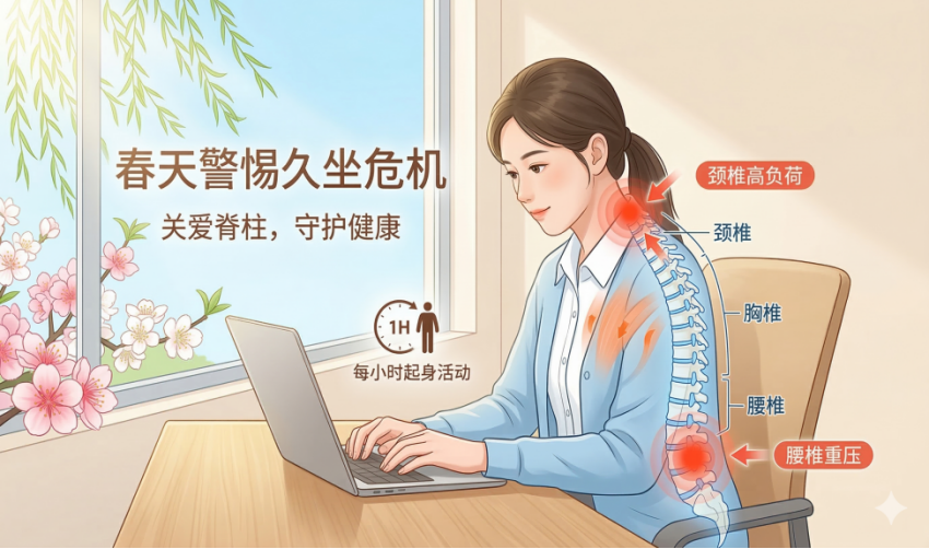 重点提示:每坐1小时,脊柱健康风险就会显著增加,及时起身活动是关键。