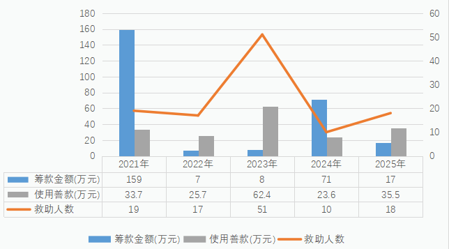 儿童恶性肿瘤等重大疾病救助专项(2022年设立):累计救助儿童重大疾病患者9人次,使用善款28万元,最高单笔救助5万元,形成“经济救助+后续治疗支持”的特色服务模式。