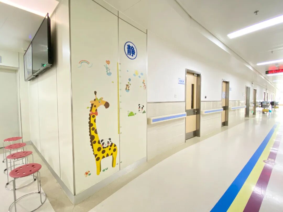 小儿外科接诊区域以卡通图片进行装饰,营造温馨轻松的氛围。身高体重测量区域的卡通装饰每三个月更新一次,增添趣味性与新鲜感。病房内同样融入卡通元素,采用卡通图案的窗帘和床上用品,提升患儿的舒适度与亲切感。此外,科室大厅设儿童游乐区,配备多种儿童喜爱的玩具与活动设施,为小患者提供愉快放松的候诊体验。