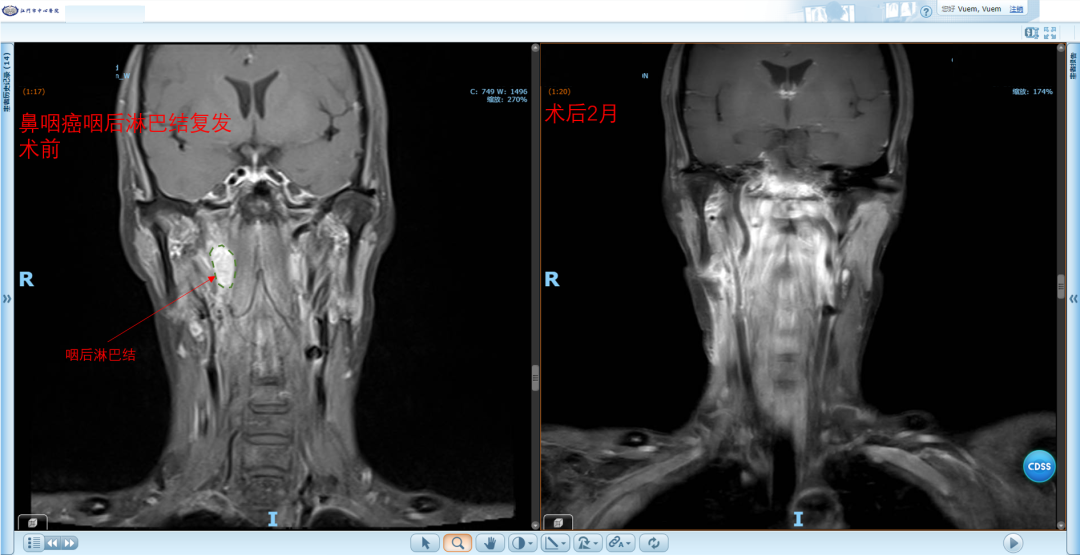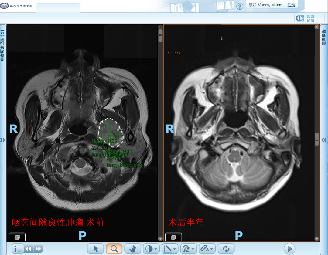 自2023年起,科室在五邑地区率先开展鼻内镜下复发性鼻咽癌切除及带蒂瓣修复术,为复发性鼻咽癌患者提供了优于二程放疗的治疗选择;随后,又陆续独立开展鼻内镜下翼腭窝、颞下窝及中颅窝底肿瘤切除术,进一步拓展了微创手术的技术边界;同期还成功完成五邑地区首例咽后淋巴结清扫术。这一系列技术突破,标志着我院在鼻咽-颅底领域的诊疗能力已达到了区域领先水平,也为复杂疾病患者带来了更为有效的治疗希望。