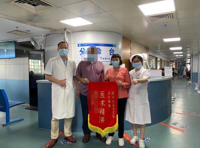 同样心怀无尽感激的,还有颈部脓肿合并糖尿病的张阿姨。刚入院时,她的颈部肿胀得像一个皮球,伴随着持续不退的高热,简单的吞咽成了一种奢望,她每一次尝试更伴随着钻心的疼痛。熊国平深知,糖尿病患者术后感染风险远高于常人,稍有不慎便会危及生命。他不敢有丝毫懈怠,结合张阿姨的身体状况,量身定制了“抗感染+控糖”双轨并重的多学科共治方案。除了日常诊疗,他还常常提前来到病房,仔细查看张阿姨的伤口恢复情况,轻声询问她的感受。当张阿姨康复出院后,她和家人特意送来锦旗:“医德高尚暖人心,医术精湛传四方”。