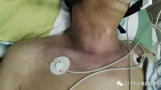 晚上8时,李师傅终于醒来,等着他的却是难以忍受的胸痛、喘息、窒息!床旁监护仪持续报警,嘀嘀嘀……血压降低,血氧下降,颈胸部皮肤越发肿胀、紫绀!急诊科医生紧急电话通知重症医学科前来会诊。