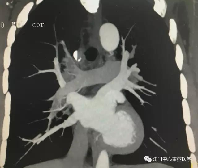 接到电话,重症医学科郑伟浩副主任医师飞奔到急诊。司机,胸痛,气促,血压低,典型的上腔静脉阻塞症状;心肌损伤标志物不高,心电图提示电轴右偏,ST-T无明显抬高,D-2聚体升高,郑医生高度怀疑“肺栓塞”。