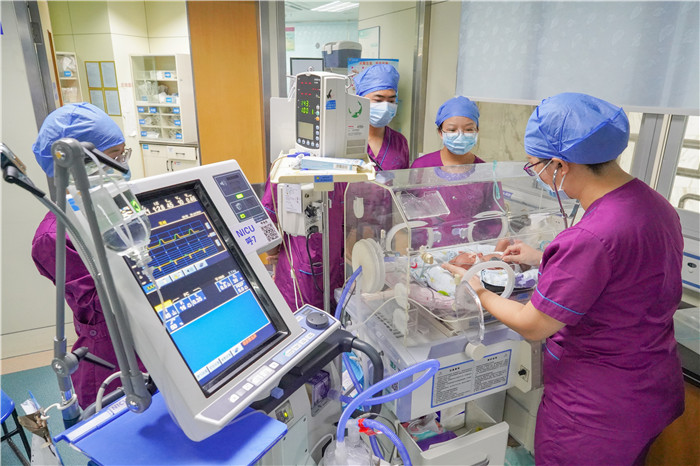 新生儿重症监护病区设有33张床位,包括20张NICU床位和13张普通新生儿床位。该病区形成了完整的专科体系,包括早产儿重症监护病房、足月儿新生儿重症监护病房、普通新生儿病房、新生儿专科门诊及高危儿、早产儿随访门诊、危重新生儿转运等功能区。
