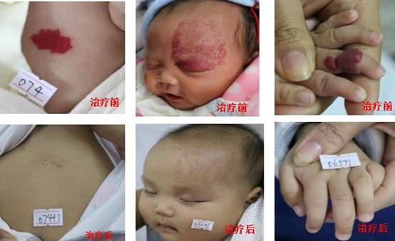 一般是连续治疗6~8次,隔天一次。治疗结束1~2个月内瘤体还会慢慢的缩小,颜色变淡,治疗结束随访观察3-6个月,看疗效调整治疗方案,是否需要第2个疗程治疗。对面积小的,效果敏感的血管瘤,一般在治疗1~2个疗程后可消退或抑制生长。对面积较大,部位较深的血管瘤可进行3~5个疗程治疗或是联合其他治疗方法,比如口服或是外涂一些药物,达到更好的治疗效果。