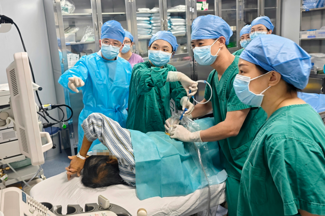 为了帮助冯伯渡过难关,消化内科救治团队召集了包括医学超声科、肝胆胰脾外科等科室在内的多学科联合会诊。结合冯伯的自身状况,经过充分讨论,MDT团队决定为冯伯采取超声引导下PTCD联合ERCP放置胆道支架术的微创治疗方案。