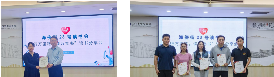 以书润心,以行致远;书香为伴,医路向前。4月2日,海傍街23号读书(第二十一期)“行万里路,读万卷书”读书会举行,江门市中心医院20名书友共赴一场阅读与分享的盛宴,旨在通过海外研修见闻与经典书籍的共读分享,拓宽国际视野,凝聚医者初心。