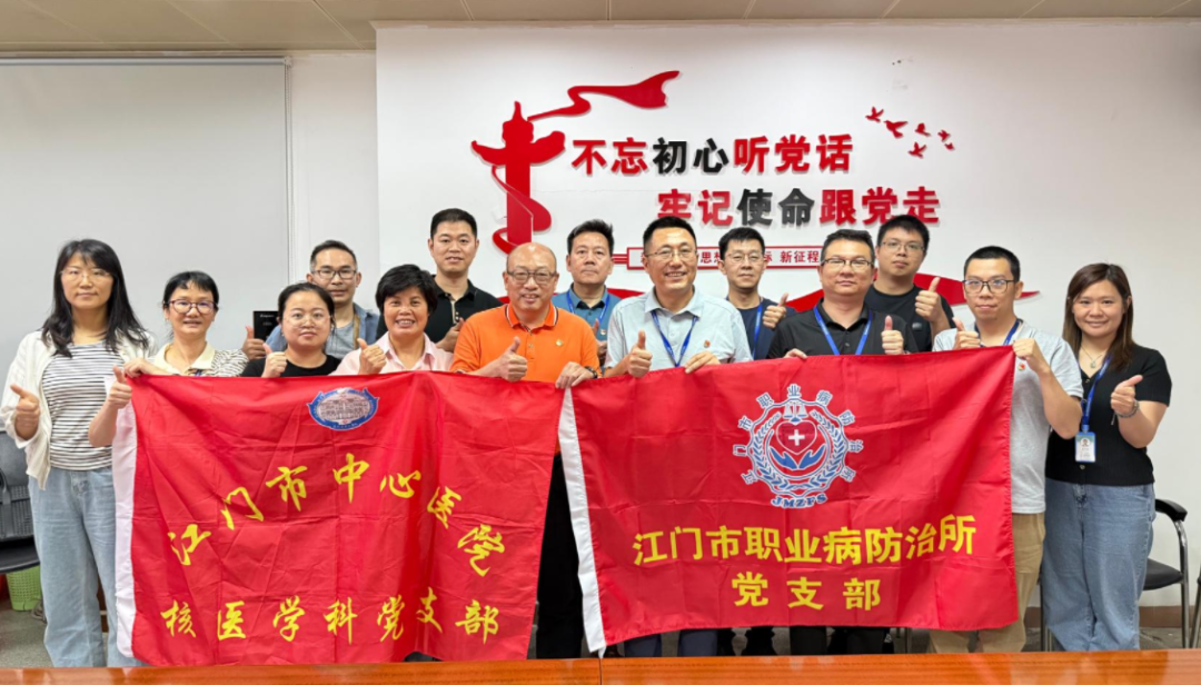 近日,我院核医学科党支部(原核介党支部)与江门市职业病防治所党支部联合开展“党建引领 职防核医”主题党建交流活动。双方围绕“四强”党支部创建经验交流、党建引领业务发展两大主题展开,齐聚一堂,共话发展。