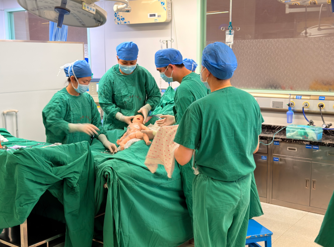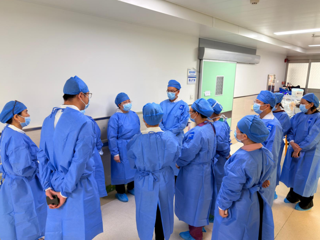 转运后产房团队结合产妇病情完成快速评估后,果断做出决策,立即实施紧急剖宫产手术,胎儿顺利娩出。在此之前,新生儿重症监护病房(NICU)团队已就位准备,暖箱、复苏设备、急救药品、物品均提前调试或者准备到位;胎儿娩出后,团队第一时间在产房内就地规范进行新生儿复苏,给予保暖、呼吸和循环等全面综合管理、监测生命体征,待新生儿生命体征相对稳定后转入NICU。