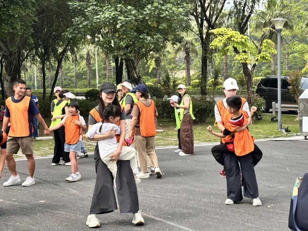 随着热身游戏“口香糖黏哪里”欢乐开场,现场气氛被迅速点燃。家长和小朋友手拉手围成一个大圆圈,当工作人员喊出“口香糖”时,他们齐声回应“黏哪里”,随后社工指定具体身体部位,例如“黏全身”,他们便迅速拥抱在一起。随着指令的不断变换,现场笑声此起彼伏,亲子间的距离也在这一来一往的互动中悄然拉近。