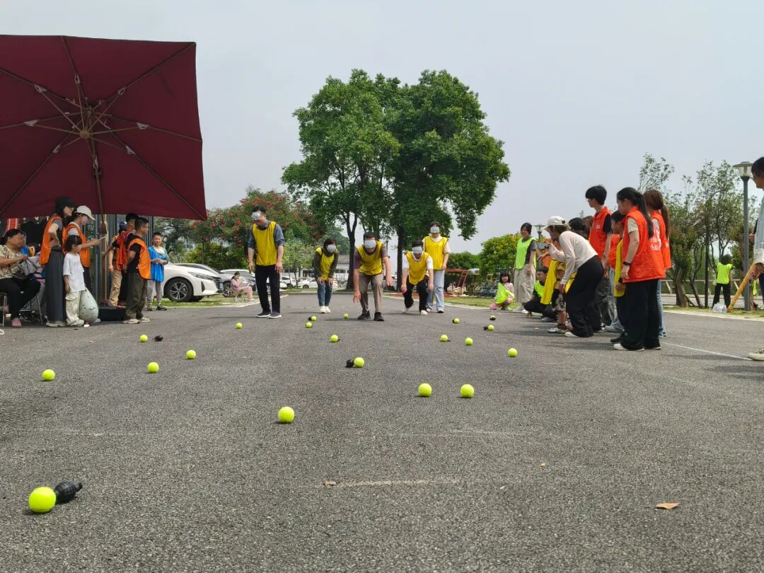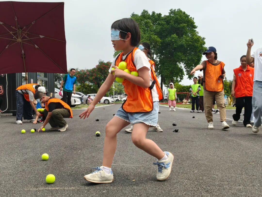“穿越地雷”活动现场气氛紧张而热烈,充满欢乐。亲子一方佩戴眼罩前行,另一方则在旁边担任“指挥官”。“向左,再向前一点!”亲子一方全神贯注地发出指令,另一方则小心翼翼地探索。当成功捡到网球时,大家欢呼雀跃,气氛热烈非凡。