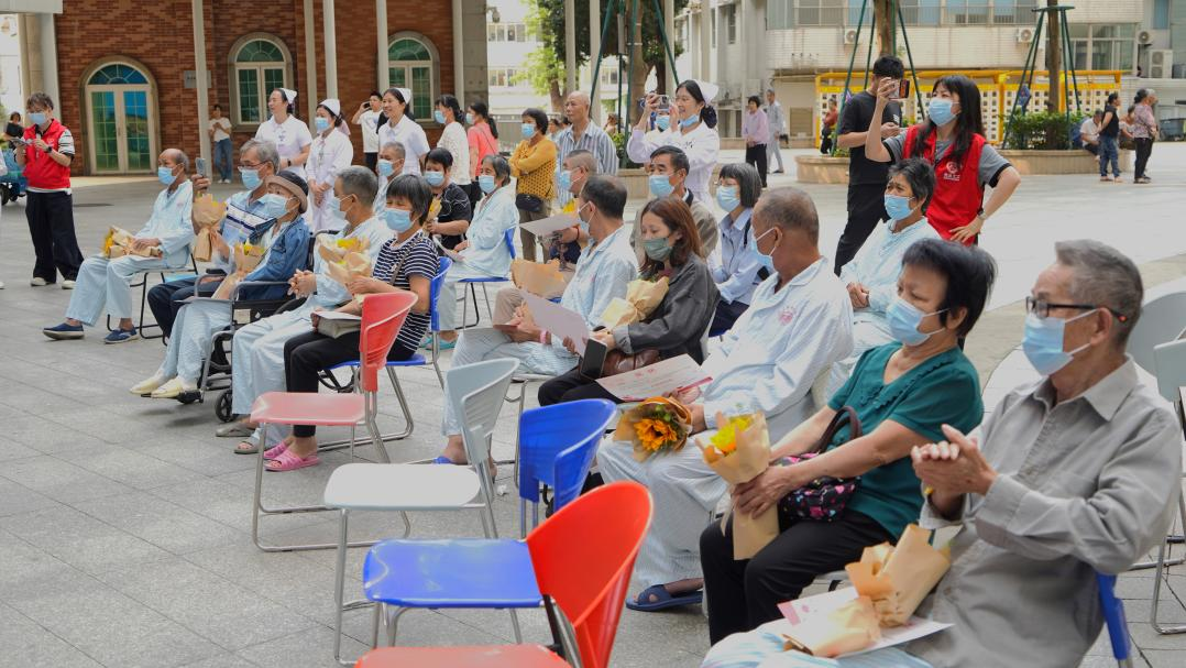 在合唱的最后环节,《阳光总在风雨后》的歌曲缓缓响起,熟悉的旋律在广场上空飘荡,在场的医护人员与康复患者共同合唱歌曲。患者们略显沙哑却充满力量的歌声,与医护人员温柔而坚定的和声融为一体,台下的观众纷纷跟着节奏挥动双手,不少人眼中泛起了泪光,这歌声不仅是对生命的礼赞,更是医患同心、共克时艰的真实写照。