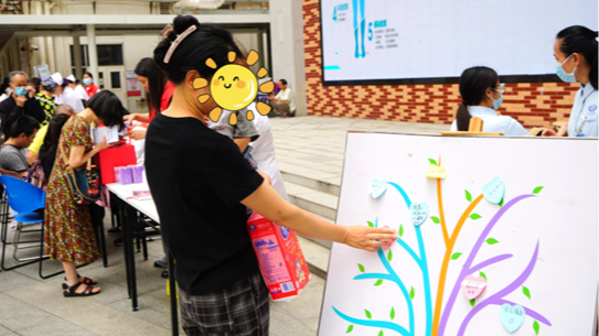 活动板上展示着与防癌紧密相关的内容,包括“防癌知识连连看”“解码疼痛密码”和“安宁疗护知多D”,通过轻松有趣的游戏形式帮助参与者在互动中学习防癌知识,并学习简单的疼痛管理小技巧。每个游戏摊位前都人头攒动,欢笑声与讨论声此起彼伏,原本枯燥的医学知识在游戏中变得生动易懂,参与者在轻松的氛围中不知不觉掌握了实用的“抗癌武器”,消除对癌症预防、治疗的误解和恐惧。
