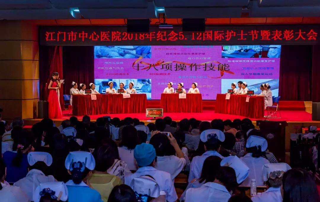 护士节前夕,江门市中心医院在多功能会议厅举办了2018年度5.12国际护士节庆祝大会。今年大会的主题是"杏林枝头花弄影,芳菲五月爱前行"。全体院领导、中层干部与500多位护士代表参加大会,共同庆祝属于他们的节日。大会对获得星级护士、表扬之星、守护之星、医护合作之星、三十年护龄护士以及在青青院中葵摄影大赛的获得者进行逐一表彰。